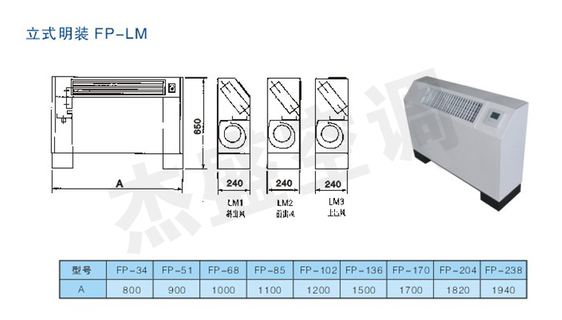 立式明裝風機盤具有管效率高,能量足,風量大,噪音低,安全可靠,壽命長的優點,是明裝風機盤管。