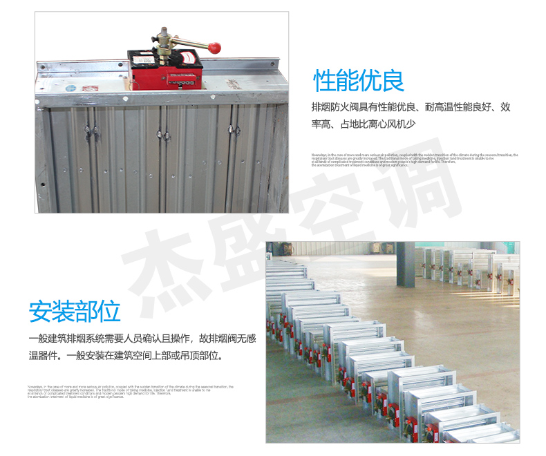 安裝在機械排煙系統各支管端部(煙氣吸入口)處,平時呈關閉狀態并滿足漏風量要求,火災或需要排煙時手動和電動打開,起排煙作用的閥門。帶有裝飾口或進行過裝飾處理的閥門稱為排煙口排煙防火閥主要優點:?
