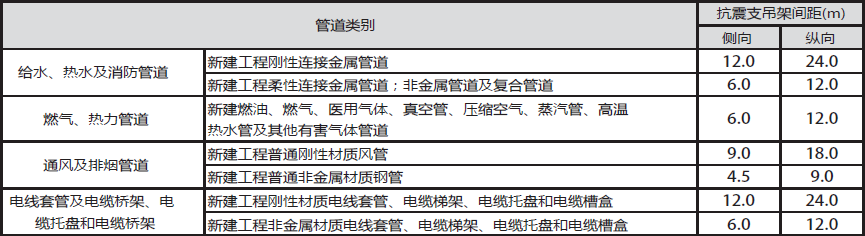 3、抗震支吊架初涉間距應滿足GB50981-2014《建筑機電工程抗震設計規范》第8.2.3條要求,并滿足表8.2.3規定: